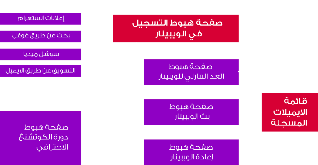 - صفحات هبوط مخصصة لكلٍ من الويبينار والدورة التدريبية.
